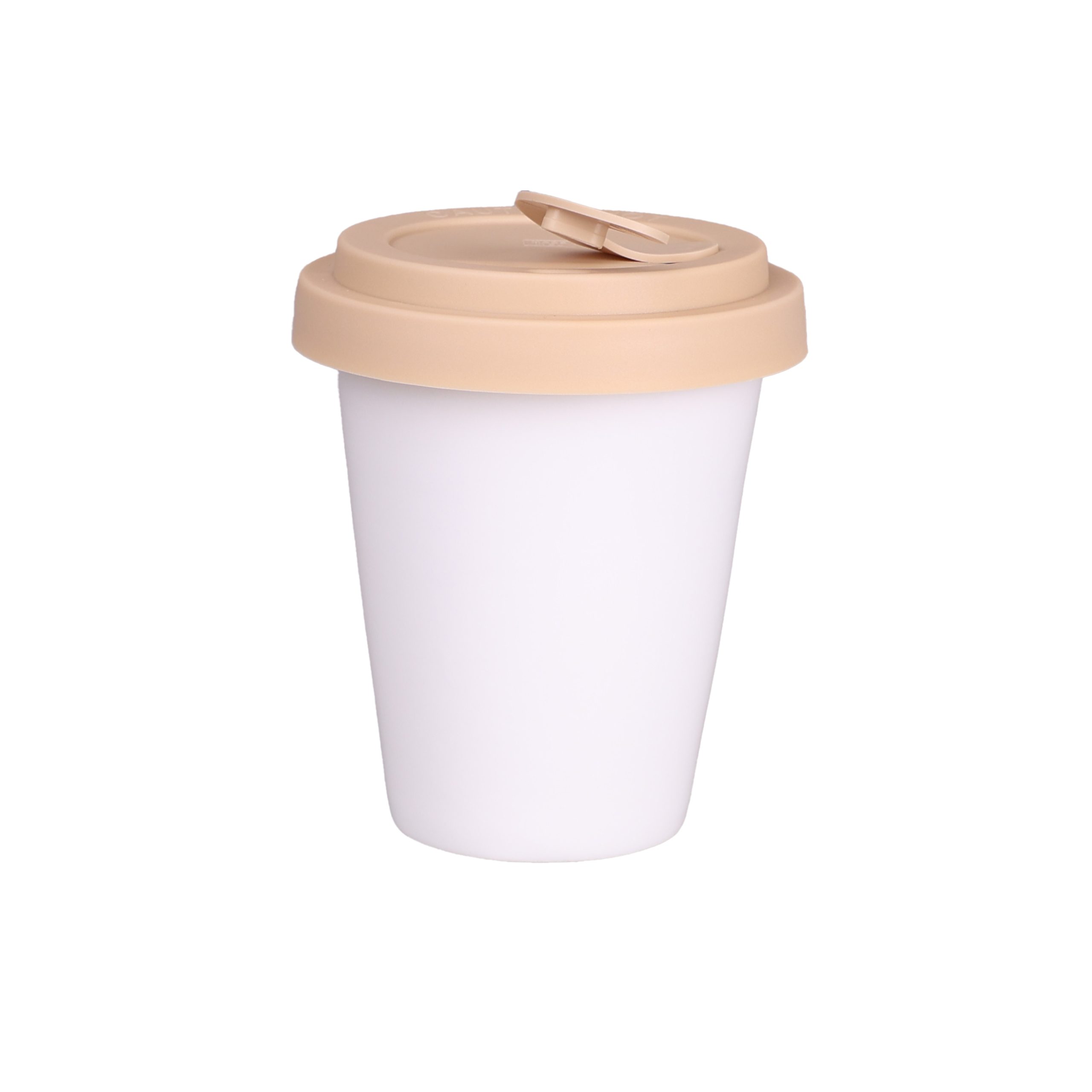 Praktyczny kubek porcelanowy z polimerową przykrywką z zatyczką, chroniącą przed przypadkowym rozlaniem napoju. Dzięki rzadko spotykanej, wewnętrznej strukturze podwójnych ścianek z porcelany kubek ten charakteryzuje się podwyższonym poziomem izolacji termicznej. Korpus kubka dostępny w kolorze białym i satin black.