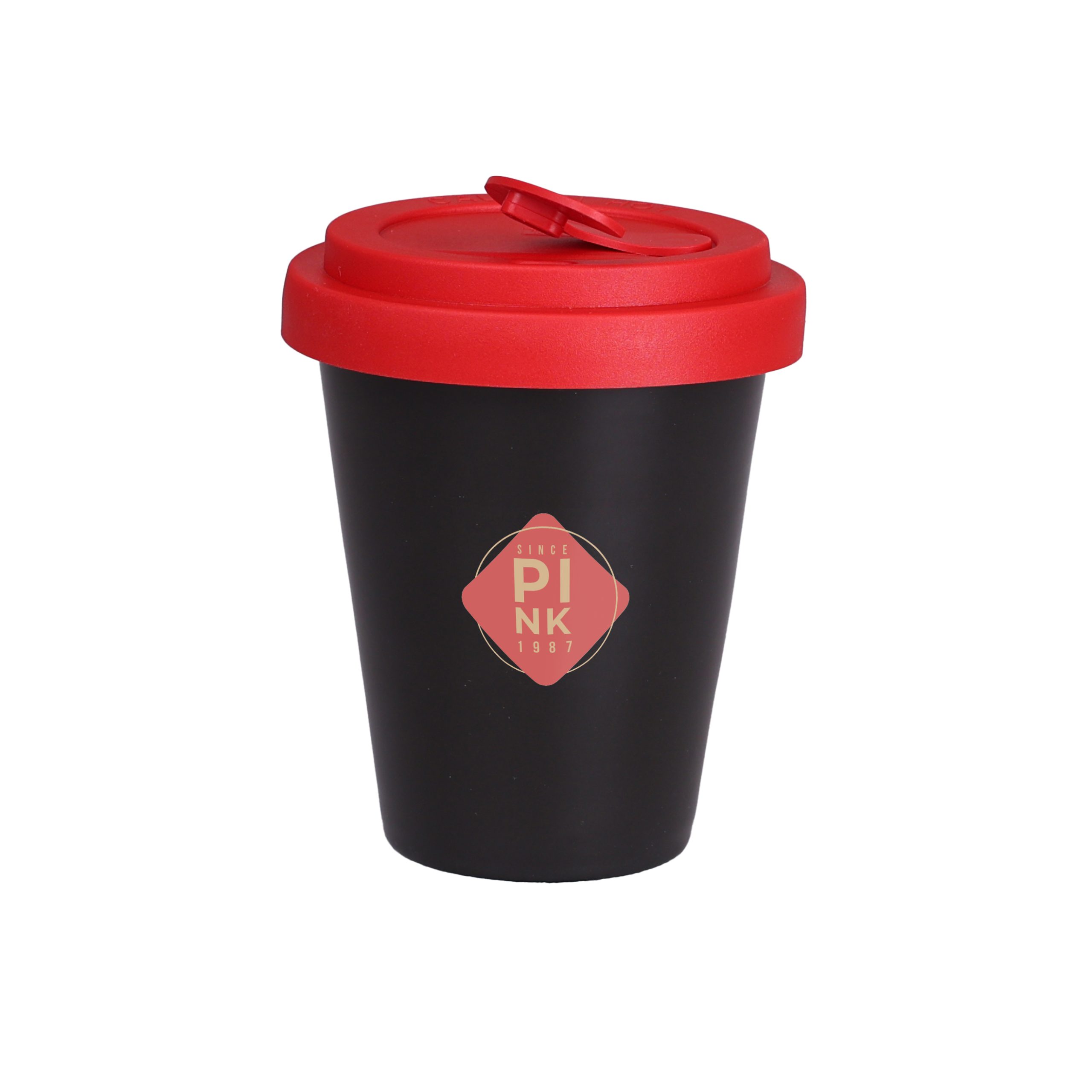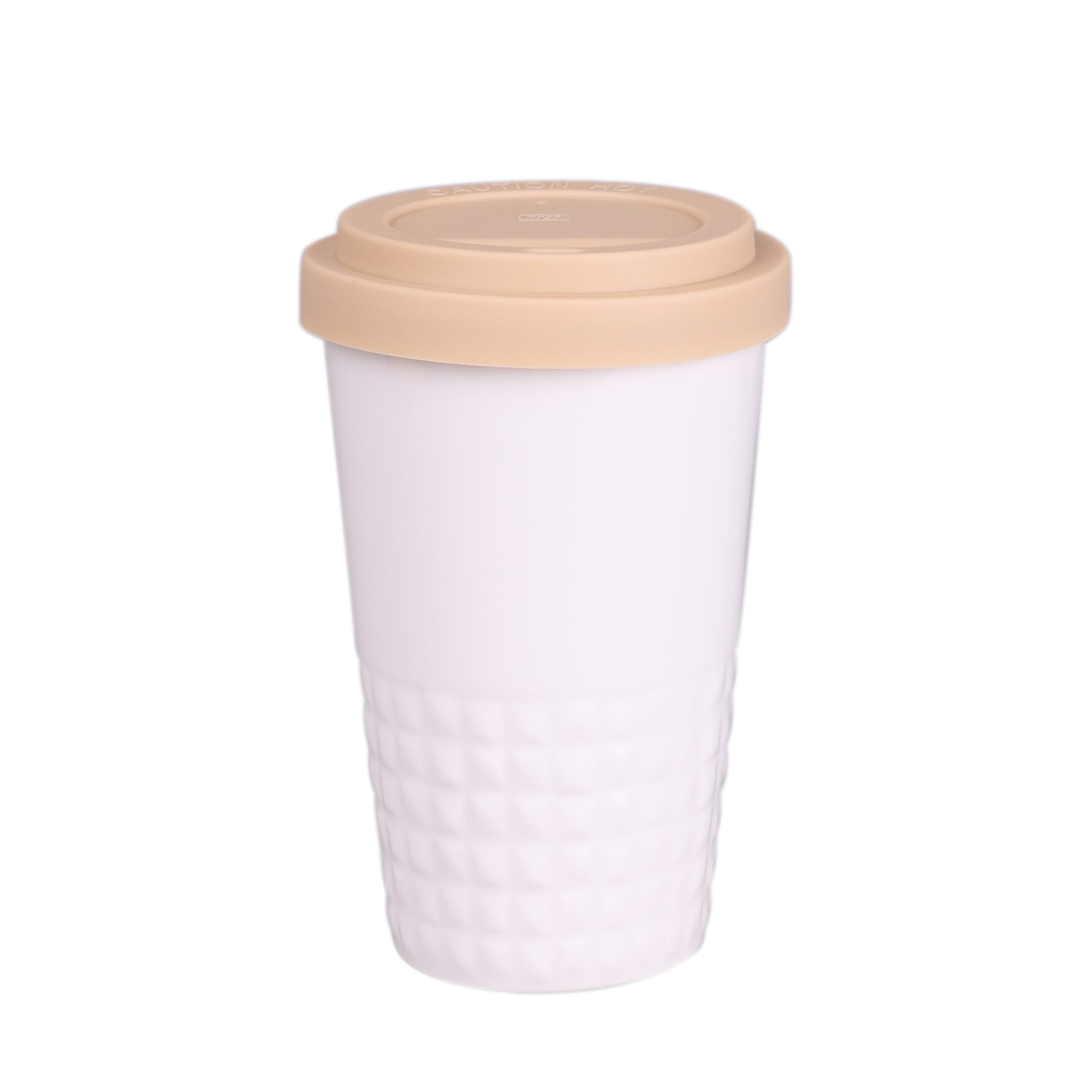 Praktyczny kubek porcelanowy z polimerową przykrywką z zatyczką, chroniącą przed przypadkowym rozlaniem napoju. Dzięki rzadko spotykanej, wewnętrznej strukturze podwójnych ścianek z porcelany kubek ten charakteryzuje się podwyższonym poziomem izolacji termicznej. Korpus kubka dostępny w kolorze białym i satin black.