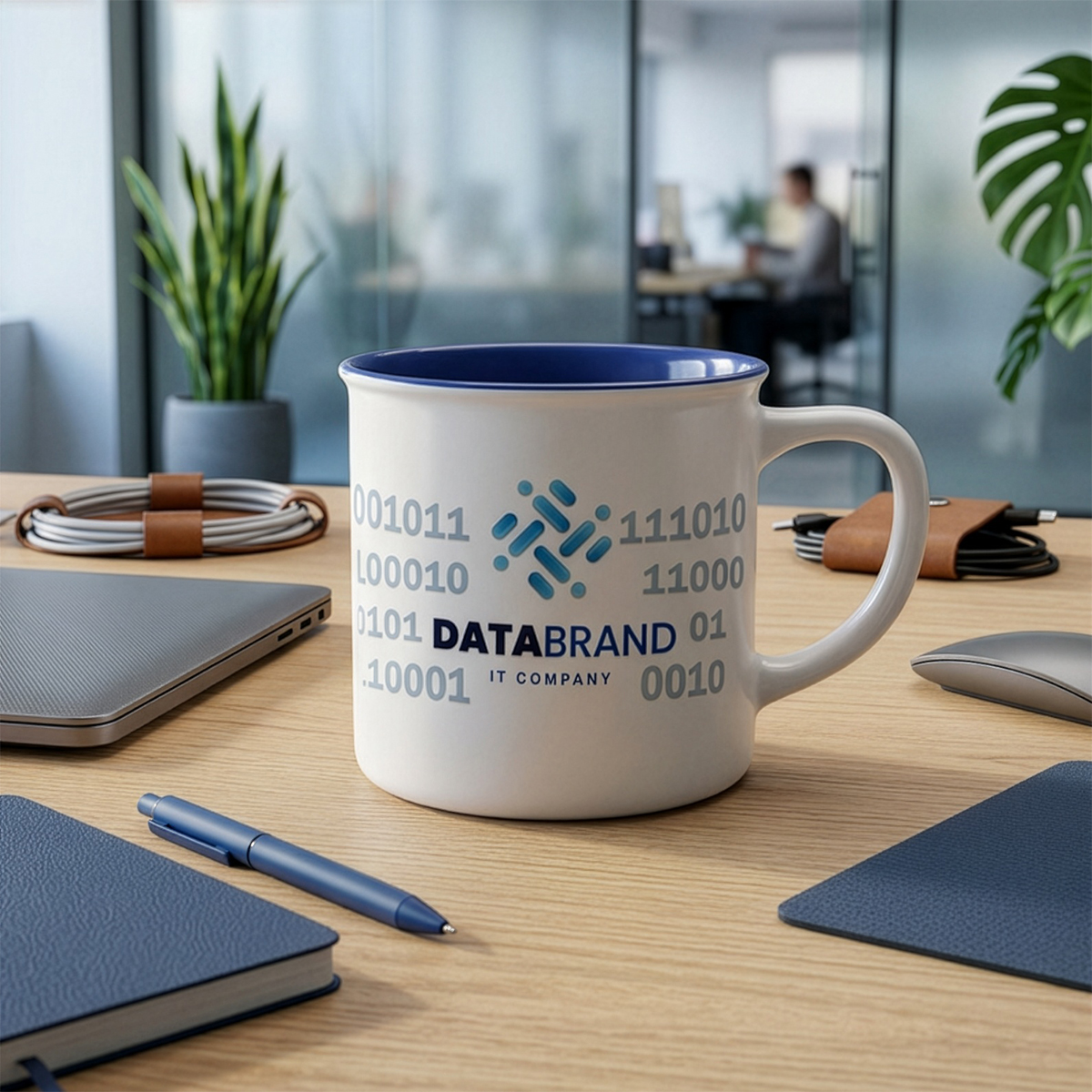 Mały z wyglądu, lecz o dużej pojemności kubek ceramiczny o białej, matowej powierzchni zewnątrz i kolorowym środku.