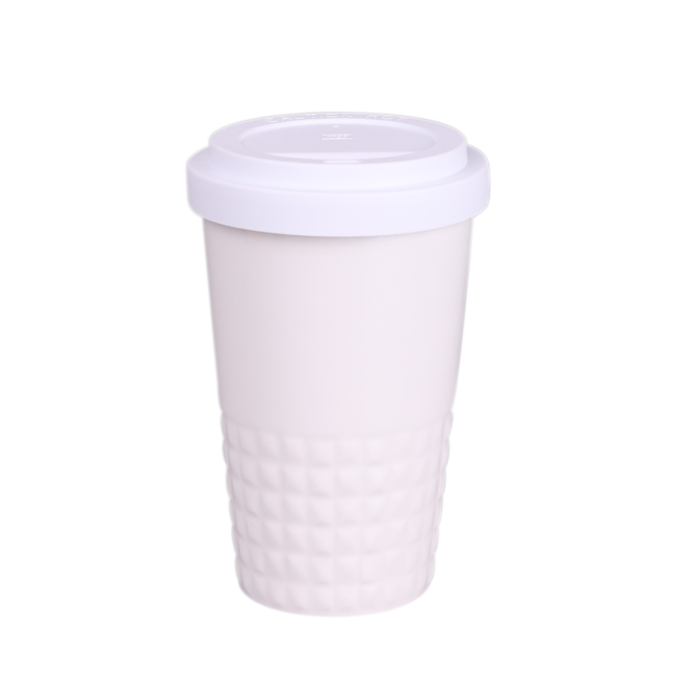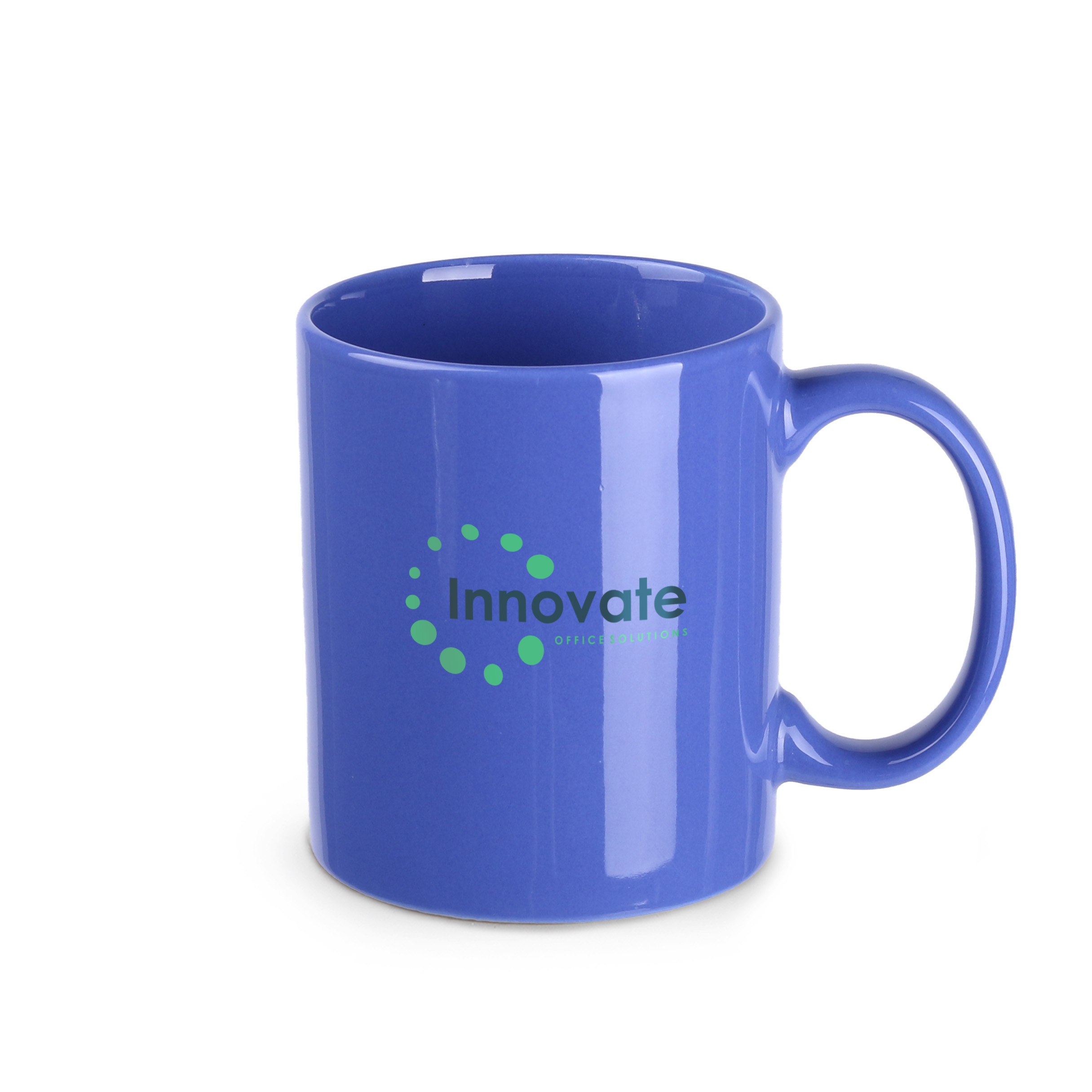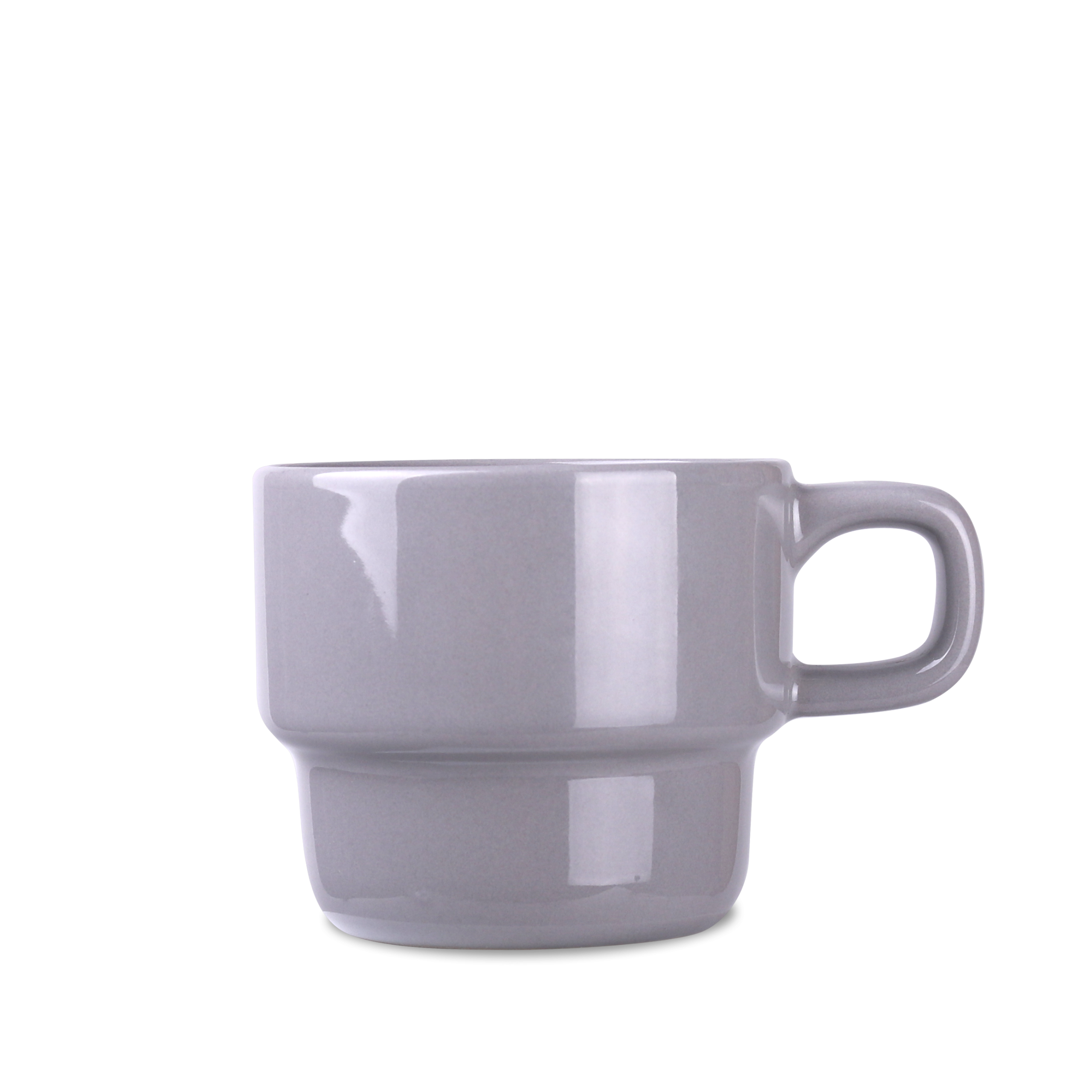 Mały z wyglądu, lecz o dużej pojemności kubek ceramiczny o czarnej, matowej powierzchni zewnątrz i kolorowym środku.