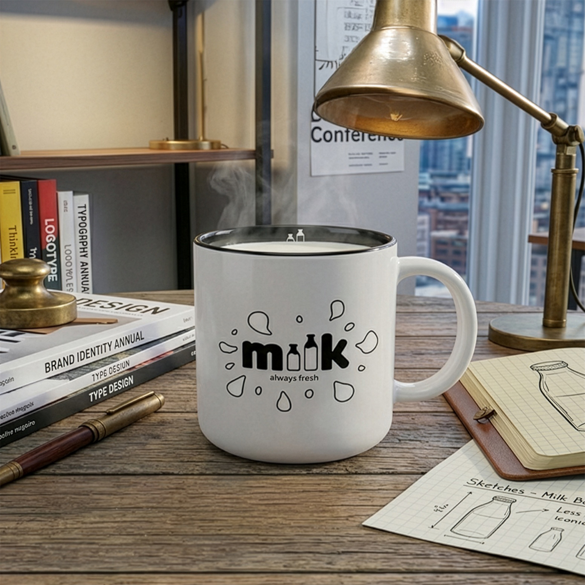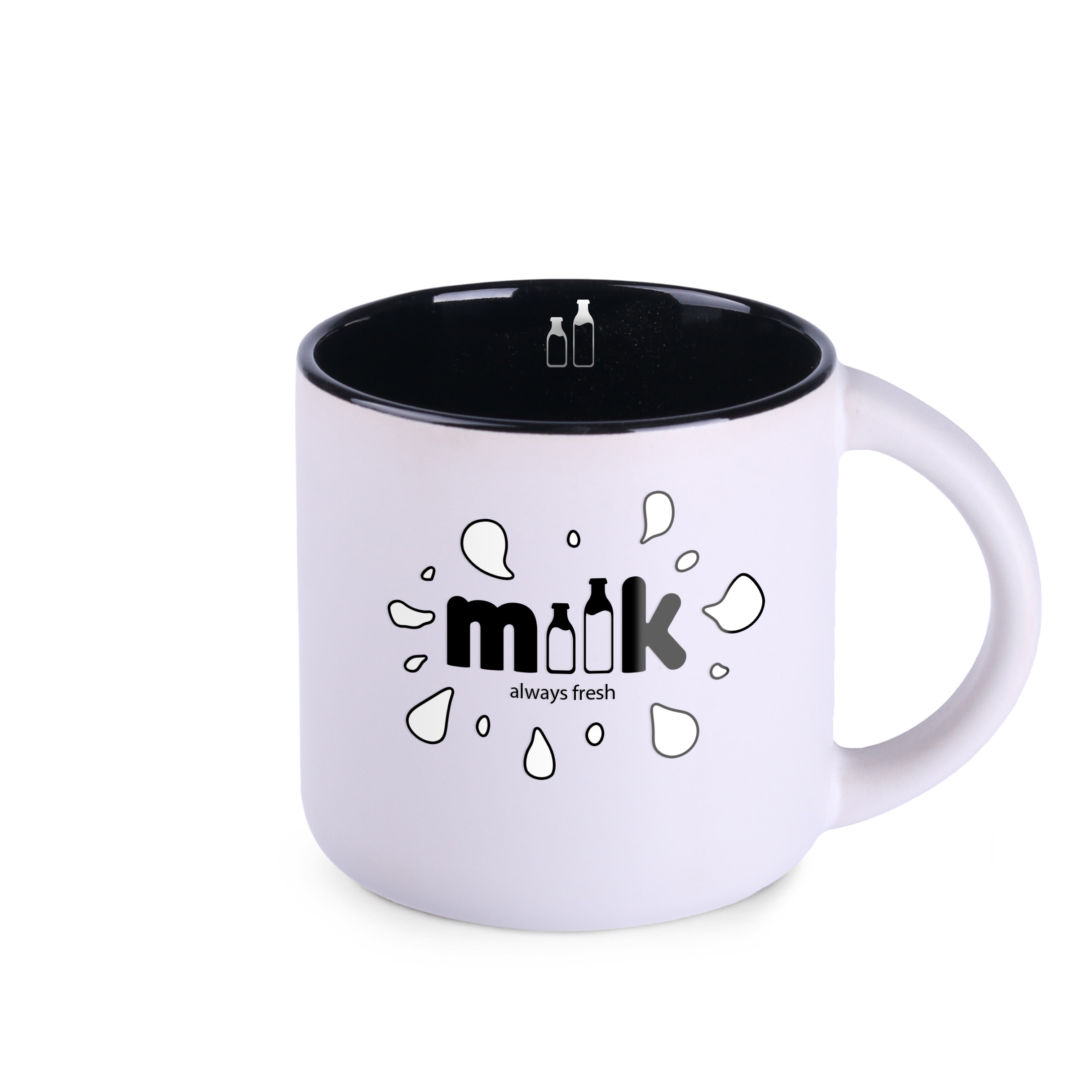 Kubek reklamowy z białym, matowym szkliwem na zewnątrz i kolorowym, błyszczącym wnętrzem. Proste, cylindryczne ścianki umożliwiają nanoszenie bardzo dużych i rozbudowanych nadruków reklamowych. Cechą charakterystyczną tego fasonu jest niepowtarzalny kształt uchwytu. Kubek o bardzo dużej pojemności.