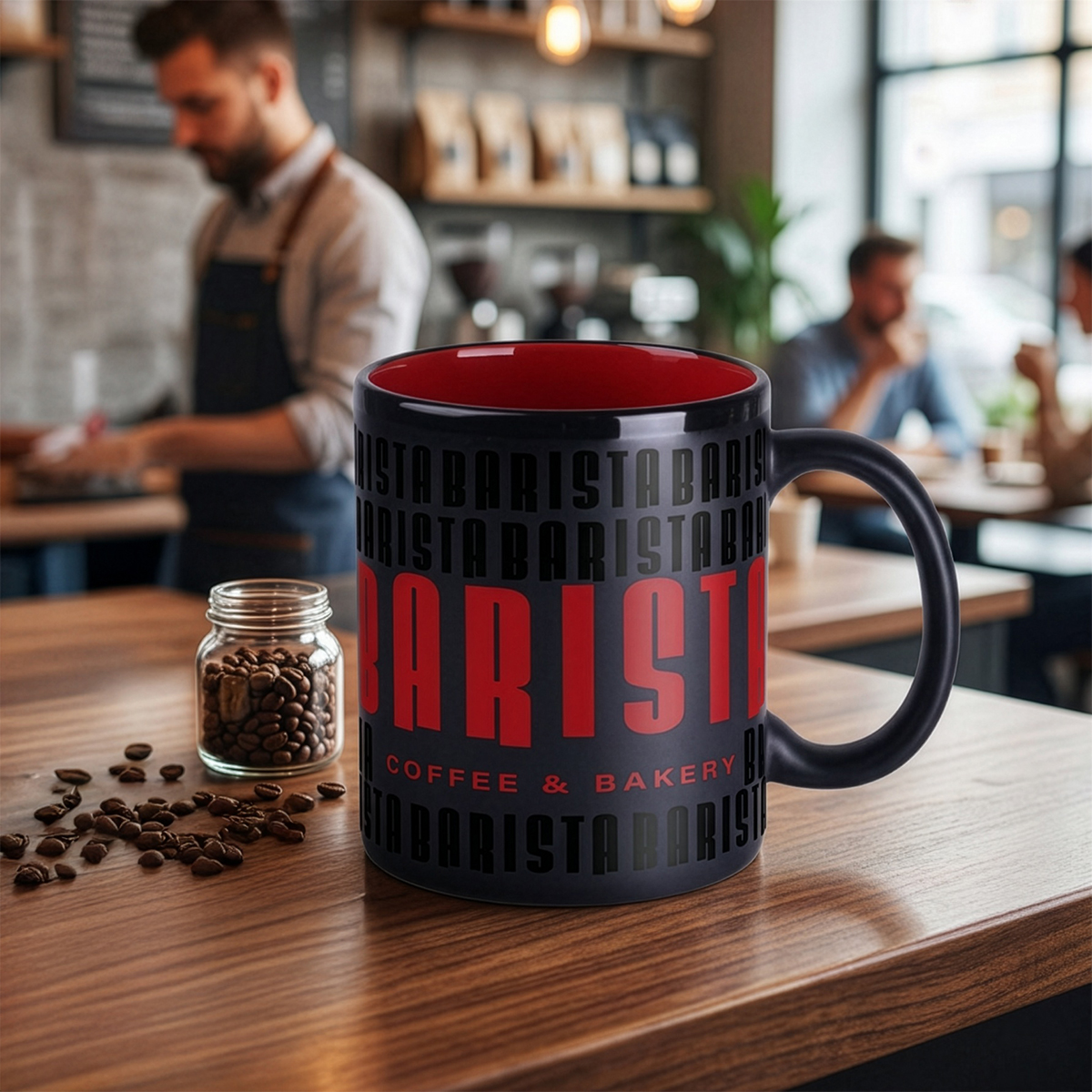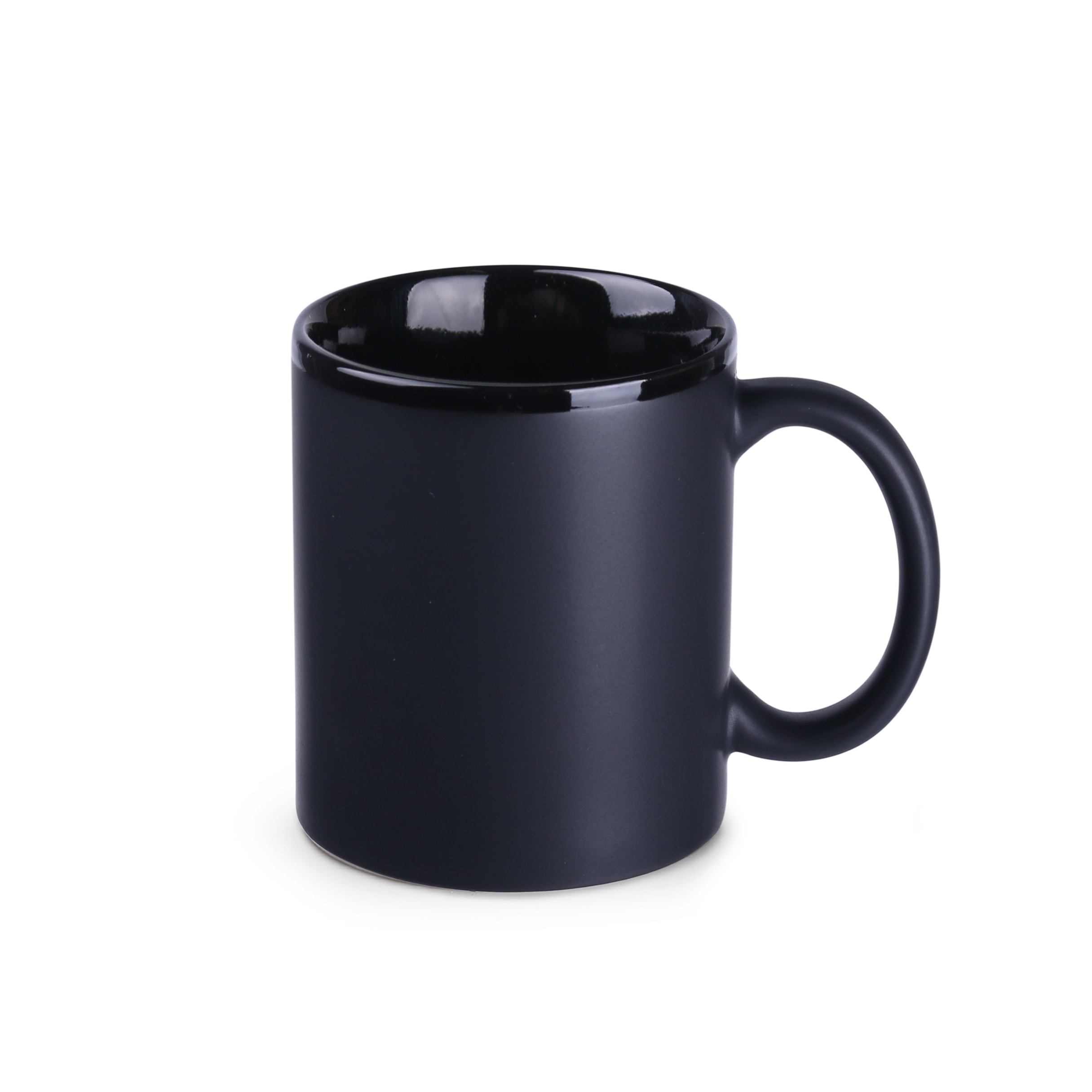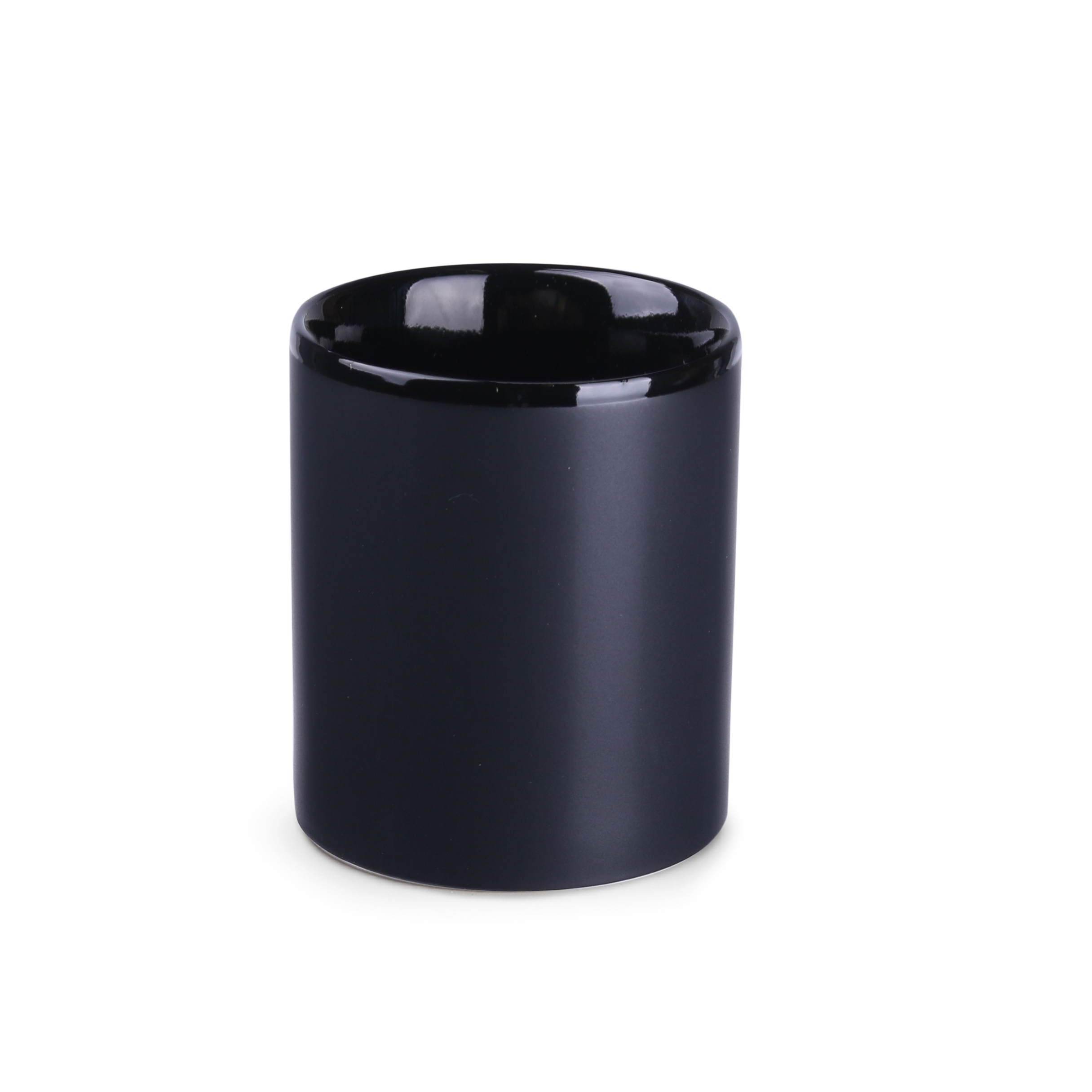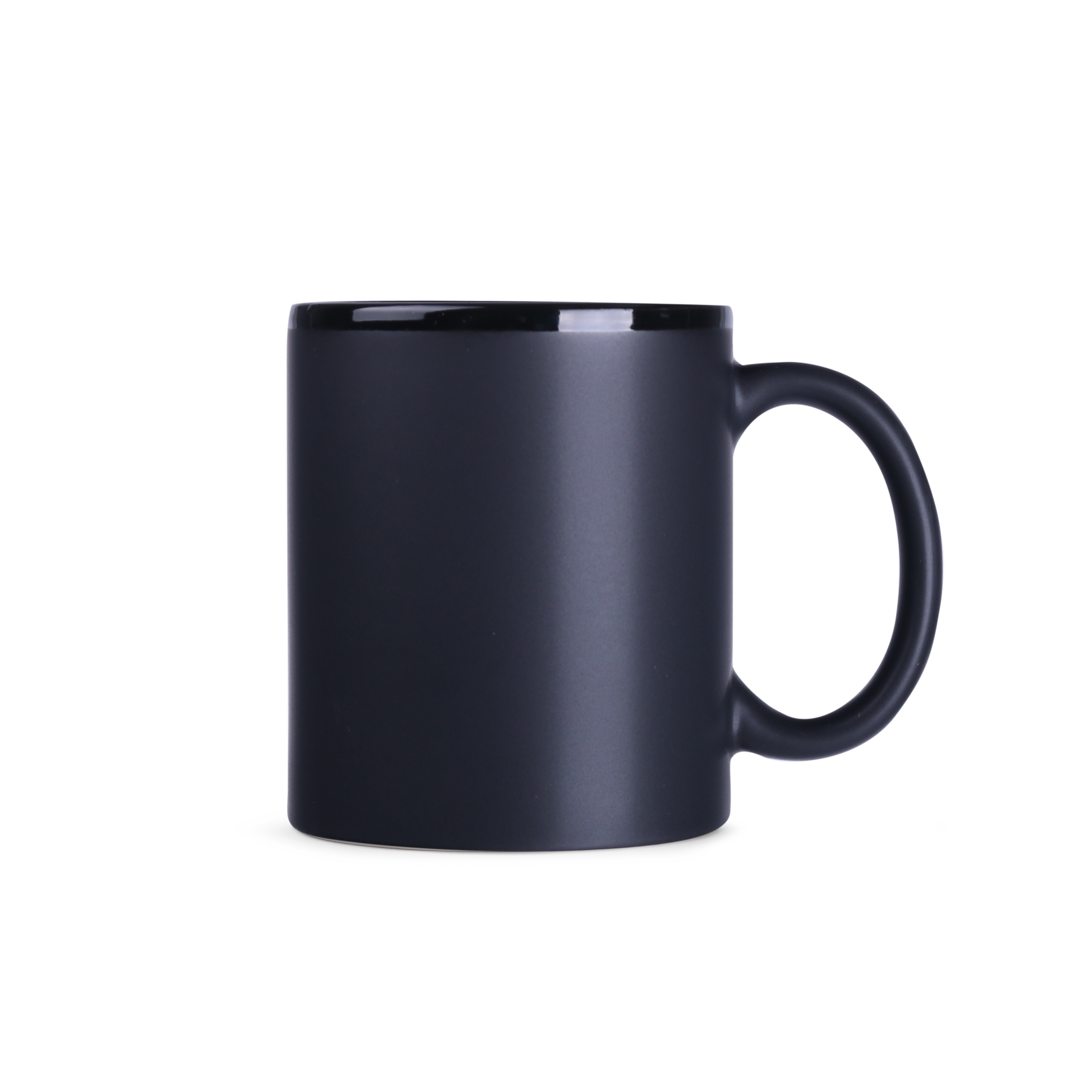 Czarna matowa wersja popularnego modelu o prostych ściankach i cylindrycznym kształcie. Posiada kilka kolorów wnętrza do wyboru oraz kontrastowe wykończenie błyszczącym paskiem, które dodatkowo podkreślą naniesiony na niego wyjątkowy branding.