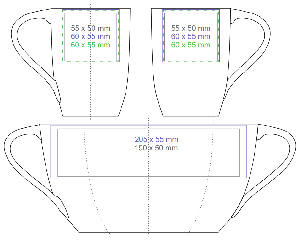 Bestsellerowy model wykonany z białej, wysokiej klasy porcelany. Dzięki oryginalnemu uchwytowi w kształcie fali, wspaniale przyciągnie wzrok do promowanego brandu.